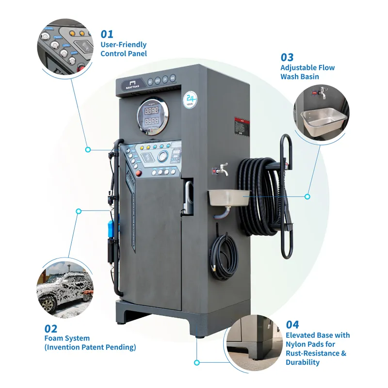 The M-F761AX Self-Service Car Wash Machine is an innovative, all-in-one solution for self-service car cleaning. Designed for efficiency and energy savings, it offers multiple features to ensure a superior car washing experience: