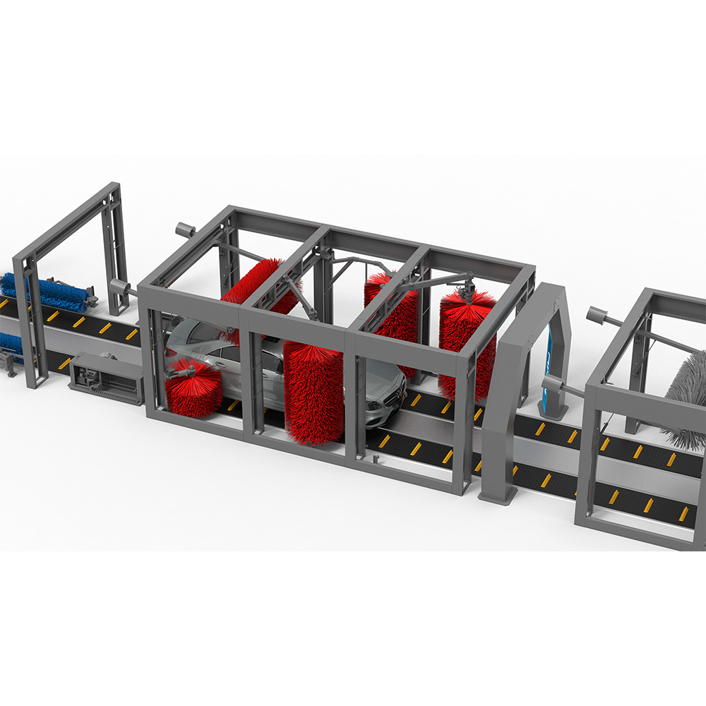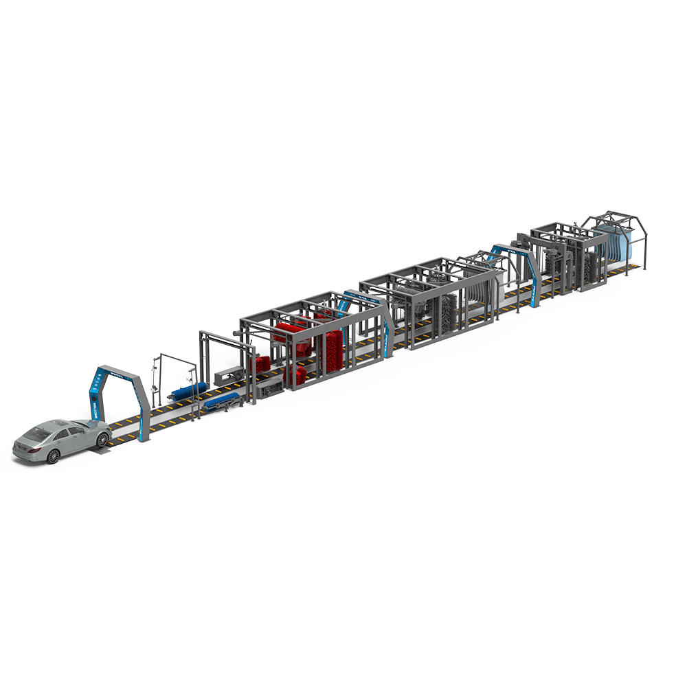 Equipped with an integrated intelligent liquid proportioning system, this machine ensures optimal use of detergent, minimizing waste while maximizing cleaning effectiveness. The high-pressure water pre-flushing system combined with EVA brushes, PE horizontal brushes, and a wheel brush guarantees deep, consistent cleaning across all vehicle surfaces.