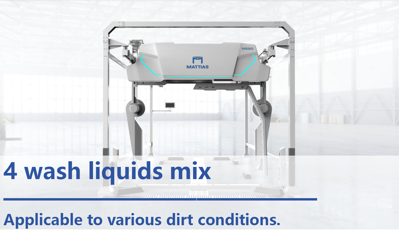 | Mode 3(Customizable) | Chassis Wash(optional)→High-pressure water rinse→Spray acidic Car Wash Solution Spray(optional)→Wait 20s→Spray alkaline Car Wash Solution Spray(optional)→High-pressure water rinse→Spray foam→High-pressure water rinse→Spray water wax→Air drying(optional side dryer) | ||